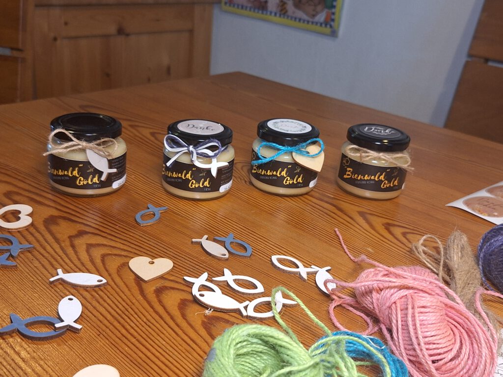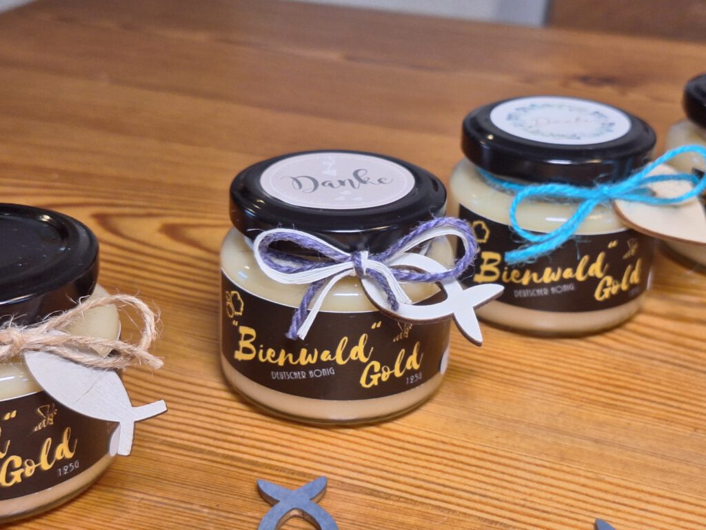 Unsere kleinen Honiggläschen 60g, 125g und auch 250g eignen sich hervorragend als Gastgeschenke für Feiern aller Art. Aktuell für Kommunionsfeiern. Bestellstopp hierfür ist dieses Jahr der 25.03.2023!